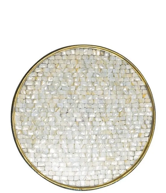 - A blue brushed finish, sold as a set of two, have a cylindrical drum shape, one smaller and one larger, with a mother of pearl round top.