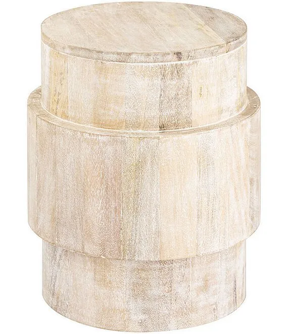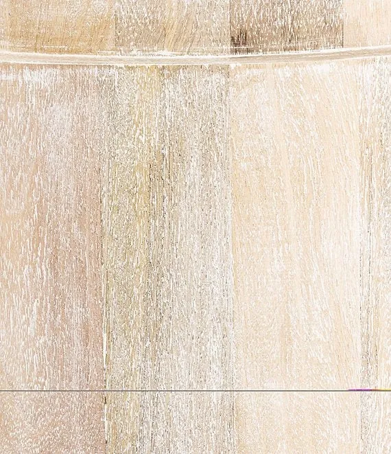 - A solid mango wood accent table with a textured whitewashed wood finish