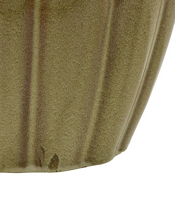 • this drum shaped design adds visual interest and depth to any spaceits rich reactive glaze in brown, white and blue will be slightly different on each piece