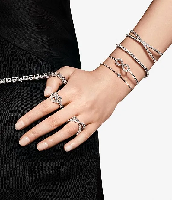 From Swarovski, the Hyperbola Infinity Crystal Cuff Bracelet features: