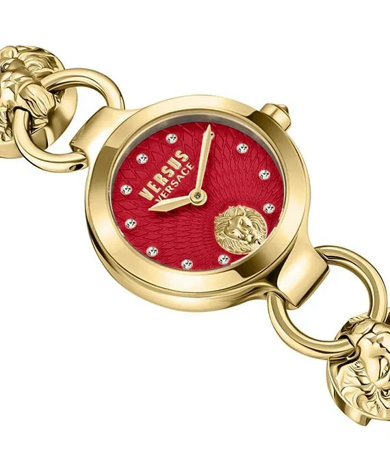 From Versus Versace, the Women's Broadwood Petite Analog Red Dial Gold Stainless Steel Bracelet Watch features: