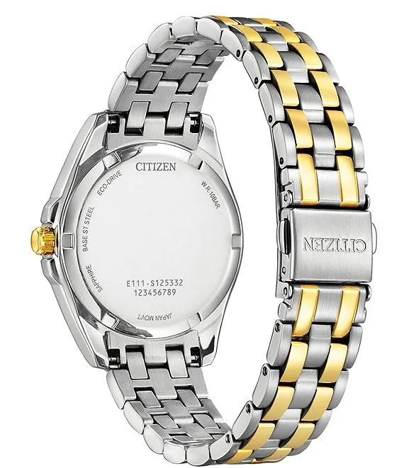 From Citizen, the Women's Peyton Three Hand Two Tone Stainless Steel Bracelet Watch features: