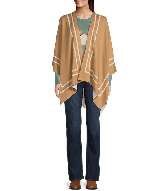 Lauren Ralph Lauren Jet Set Reversible Striped Border Knit Ruana