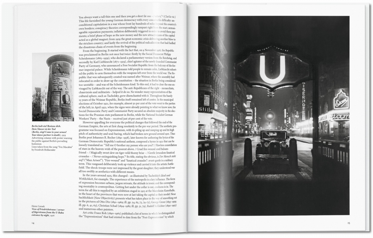 This book immerses readers in the freewheeling spirit of Berlin��s Weimar age. Through exemplary works in painting, sculpture, architecture, graphic design, photography, and film, we uncover the innovations, ideas, and precious dreams that characterized this unique cultural window. We take in the jazz bars and dance halls; the crowded kinos and flapper fashion; the advances in technology and transport; the radio towers and rumbling trams and trains; the soaring buildings; the cinematic masterworks; and the newly independent women who smoked cigarettes, wore their hair short, and earned their own money.