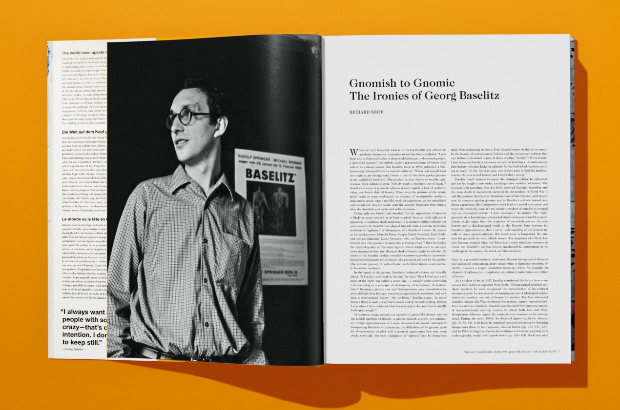 Now available in an updated unlimited edition, this book features large-format reproductions of more than 400 works in all media plus installation views and portrait shots. Texts approach the subject from different perspectives: there is a portrait of Baselitz and his dark sense of humor by long-time connoisseur Richard Shiff, an essay on the formation of his art and development as a painter by critic Jonathan Jones, on the sculptural work since his scandalous success at the Venice Biennale 1980 by art historian Eva Mongi-Vollmer, on his artistic strategies by art historian Carla Schulz-Hoffmann, a collection of literary vignettes relating to the artist��s use of myth and history by author and director Alexander Kluge, and a studio conversation with art journalist Cornelius Tittel. Statements from the artist and an illustrated biography complete this unprecedented exploration of Georg Baselitz��s work.