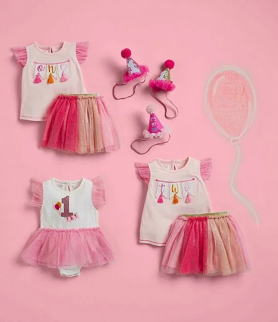 - printed knit body with the numeral "1" balloons and the word "Yay" on the front