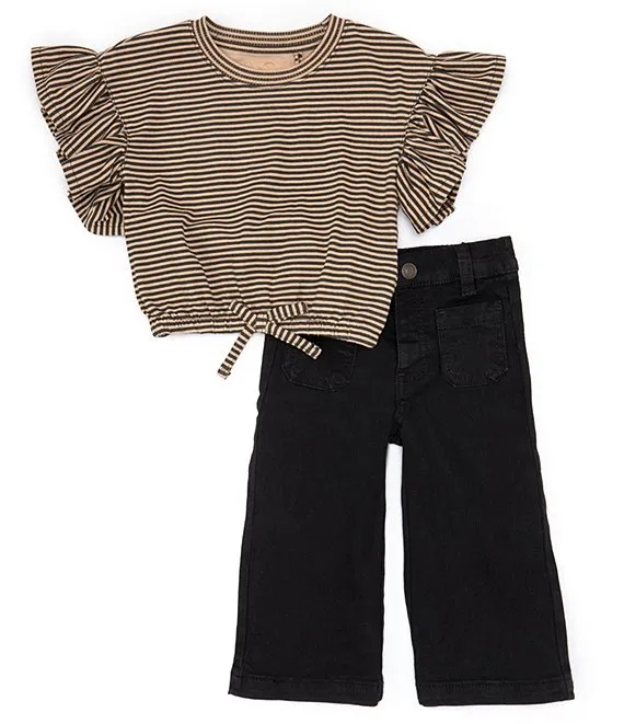 • Baby Girls 12-24 Months Short Sleeve Ruffle Knit Top & Denim Jean 2-Piece Set