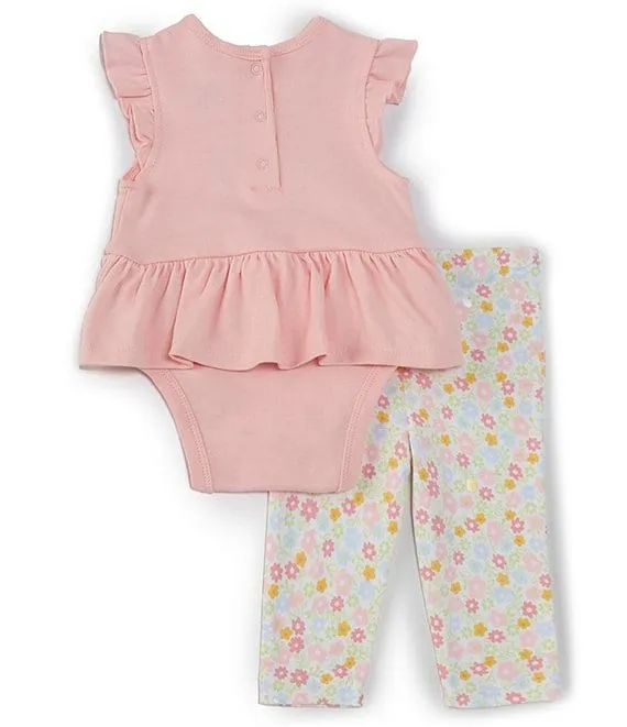 Baby Girls 3-12 Months Bunny Short Sleeve Skirted Bodysuit & Flower-Printed Pant Set