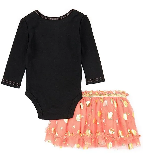 • Baby Girls 3-12 Months Long Sleeve Fab Boo Lous Graphic Bodysuit Dotted Tutu Skirt & Dotted Leg Warmers Set