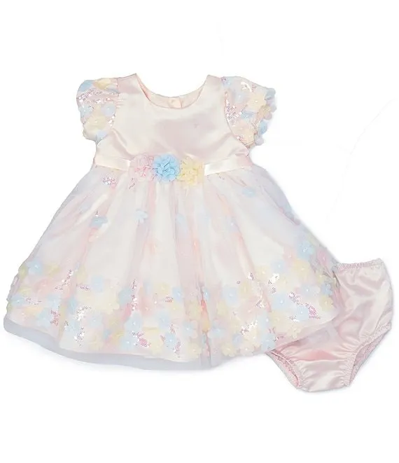- Iridescent sequin-embellished, 3D flower-appliqué design