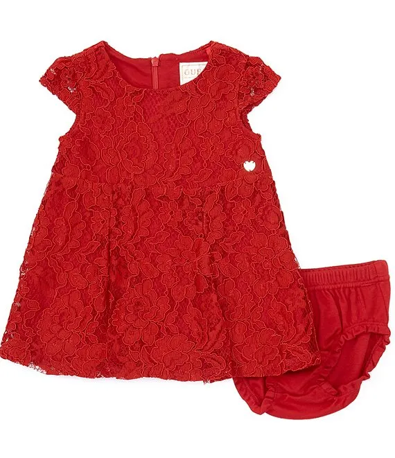 • Guess Baby Girls 3-24 Months Short-Sleeve Lace Fit-And-Flare Dress and Bloomers Set