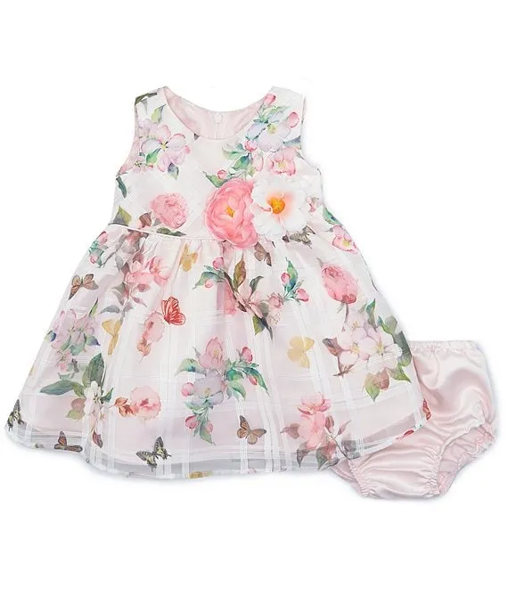 • Baby Girls 3-24 Months Sleeveless Floral/Butterfly-Printed Organza Fit-And-Flare Dress