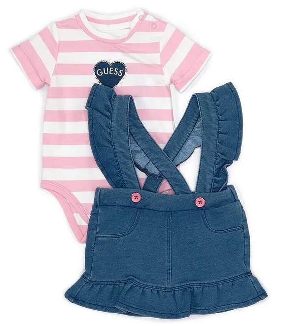 Guess Baby Girls 3-24 Months Sleeveless Knit Denim Jumper Dress & Short-Sleeve Striped Jersey Bodysuit