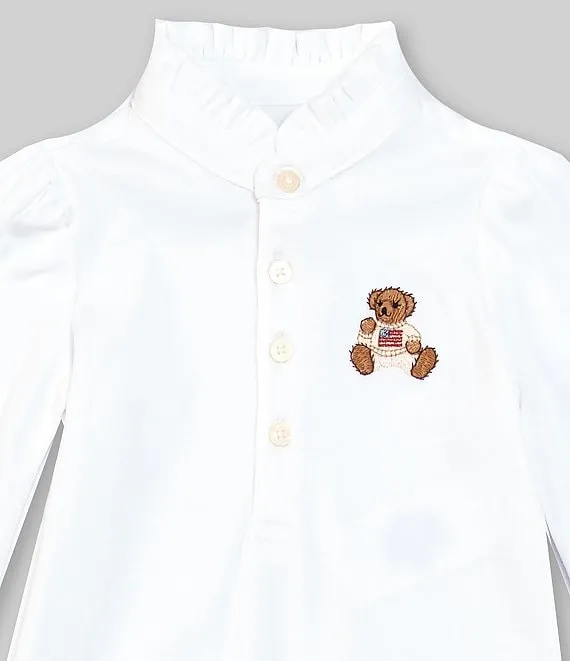 • Baby Girls 3-9 Months Long-Sleeve Polo Bear Footed Coverall
