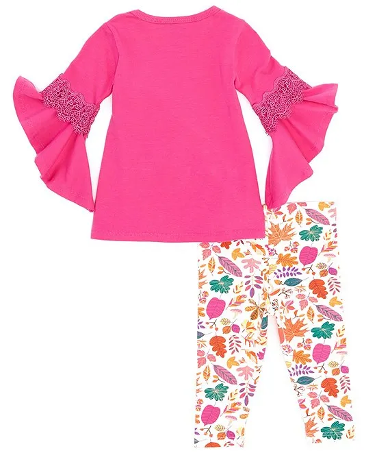 Bonnie Jean Baby Girls Newborn-24 Months Bell-Sleeve Pumpkin-Appliqued Tunic Top & Printed Leggings Set