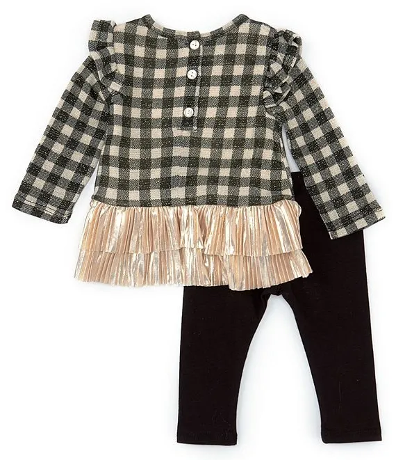 Bonnie Jean Baby Girls Newborn-24 Months Long Sleeve Checked Lurex Hacci/Tiered Skirted Drop-Waist Dress & Leggings Set