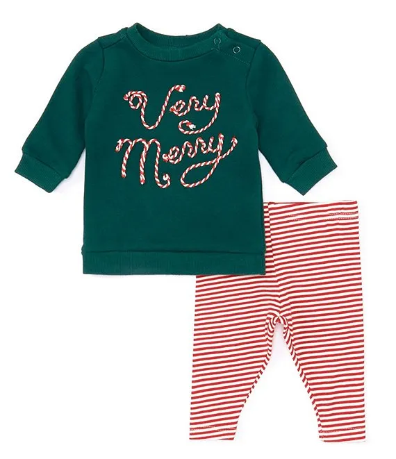 • Baby Girls Newborn-24 Months Very Merry Long Sleeve Top & Stripe Leggings Set