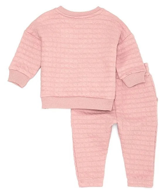 - Quilted velour sweatshirt with ribbed crew neckline, cuffs and hem