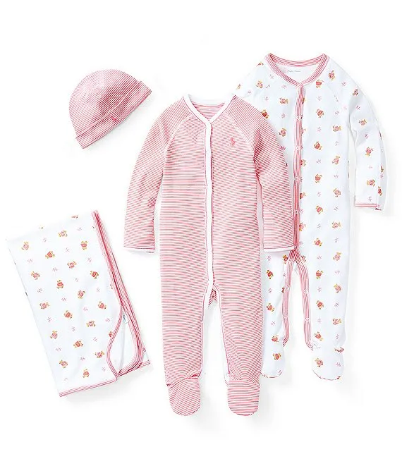 Lauren Ralph Lauren Baby Girls Newborn-9 Months Long Sleeves Polo Bear Footed Coverall