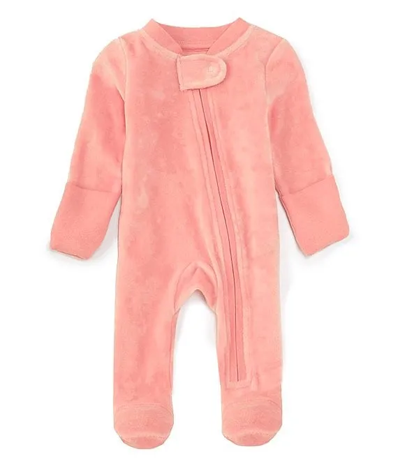 Baby Girls Newborn-9 Months Round Neck Long Sleeve Velour Zip Front Coverall