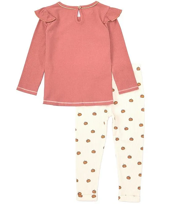 Baby/Little Girls 12 Months-5T Long Sleeve Pumpkin Appliqued Tunic Top & Printed Leggings Set