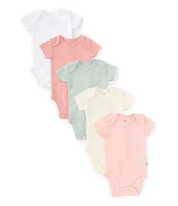 Baby Clothing Baby Girls Newborn-12 Months Short Sleeve Organic Cotton Bodysuit 5-Pack