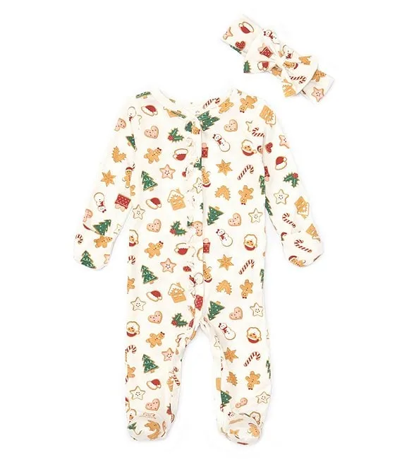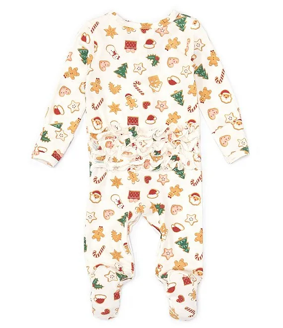 Baby Girls Newborn-9 Months Christmas Cookie Long Sleeve Ruffle Snap Front Coverall