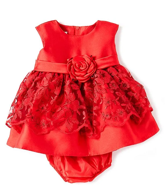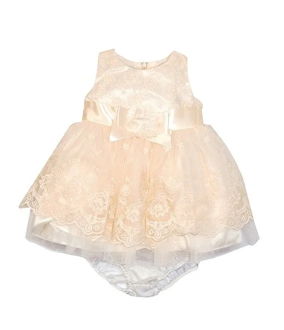 Bonnie Jean Baby Girl Newborn-24 Months Sleeveless Embroidered Mesh Ribbon Dress