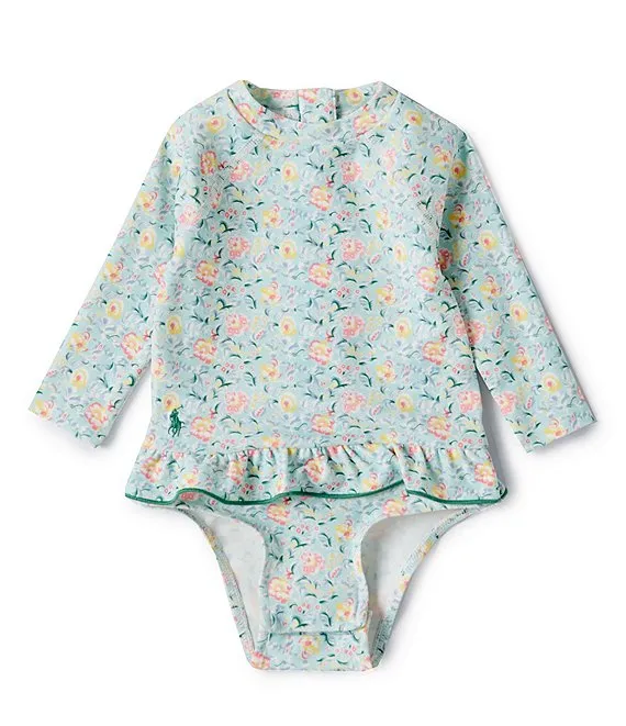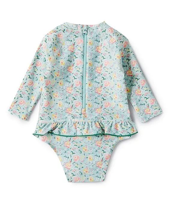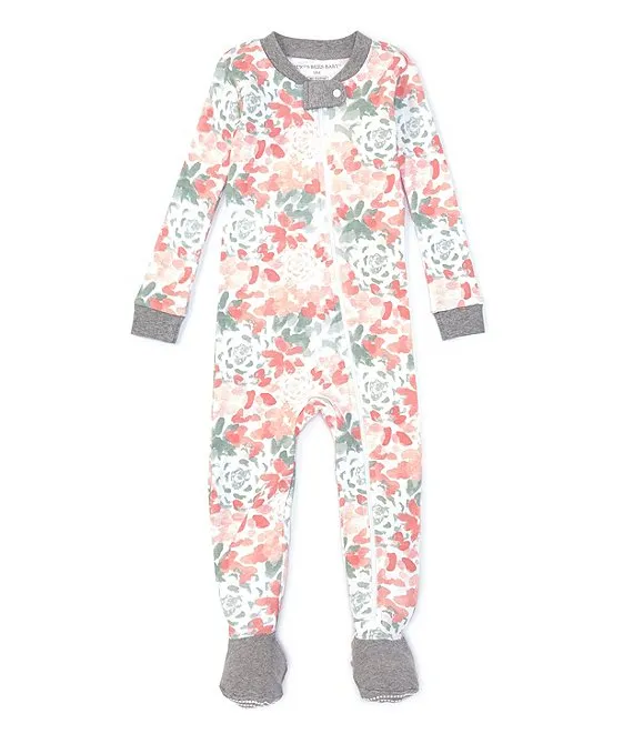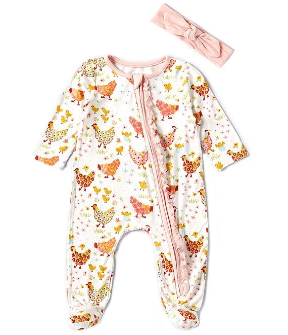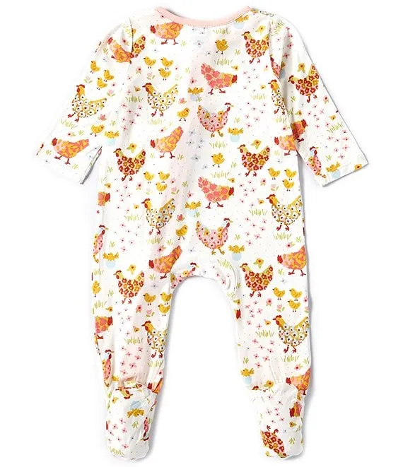 Baby Girls Newborn-9 Months Long-Sleeve Floral/Chicken-Printed Footed Coverall
