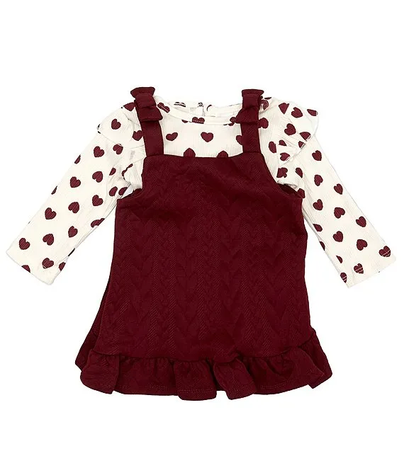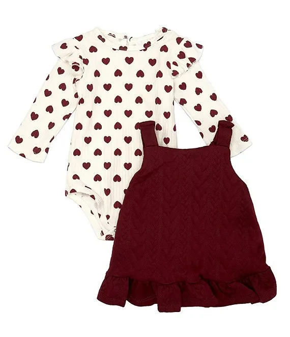 Baby Girls 3-24 Months Sleeveless Solid Jumper Dress & Long Sleeve Heart-Printed Bodysuit Set