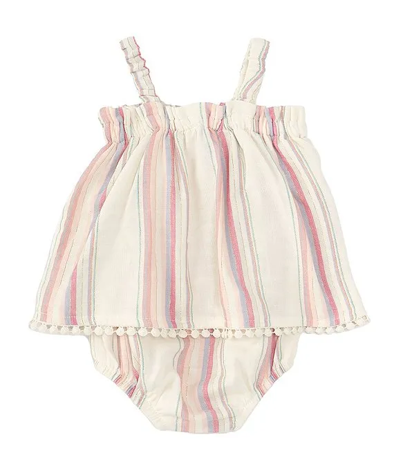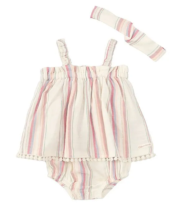 Calvin Klein Baby Girls Newborn-9 Months Sleeveless Lurex-Striped Skirted Bubble