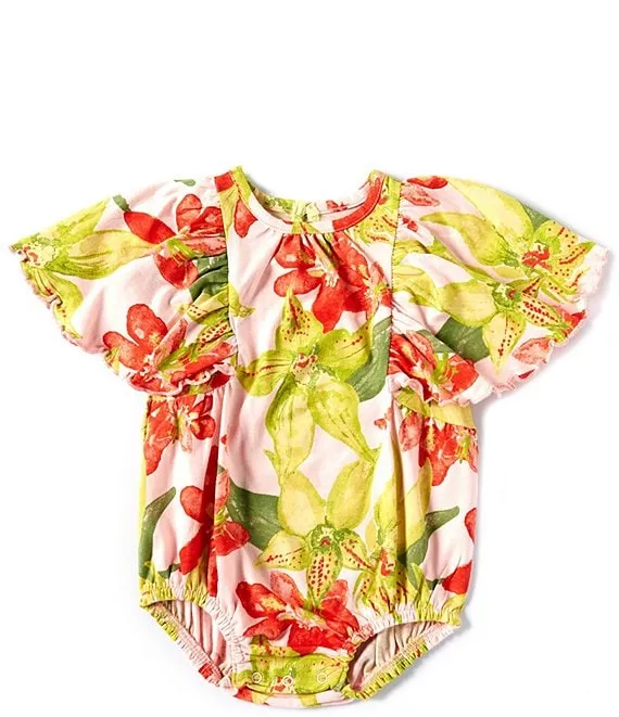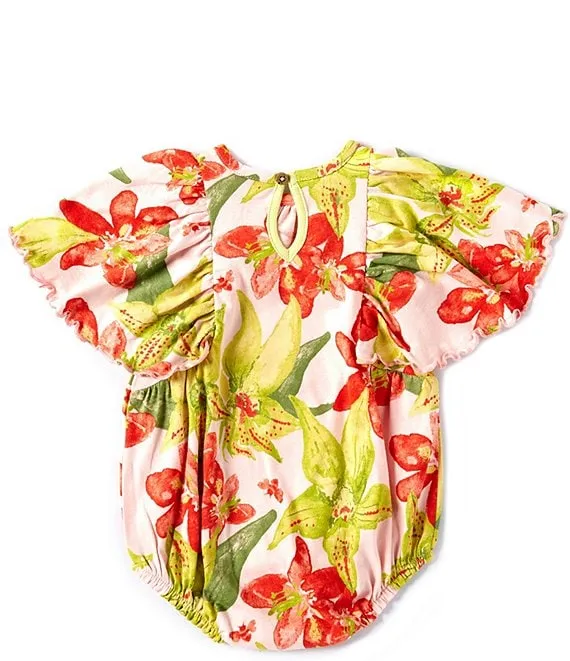 Baby Girls 3-12 Months Flutter Sleeve Floral Skirted Bodysuit