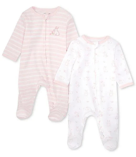 Baby Girls Newborn-9 Months Springtime Long-Sleeve Footed Coverall 2-Pack