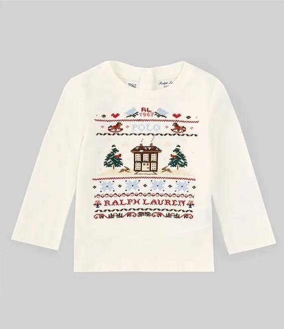 Lauren Ralph Lauren Baby Girls 3-24 Months Long Sleeve Holiday Embroidered Jersey T-Shirt