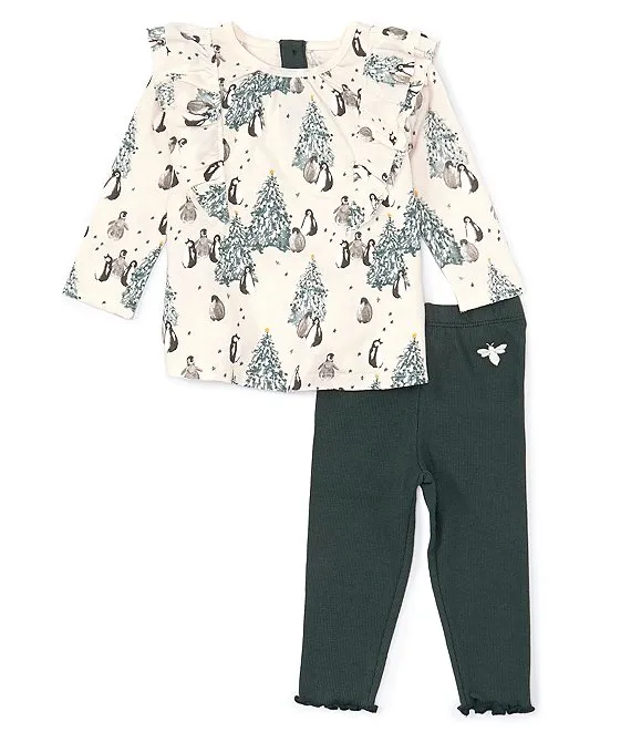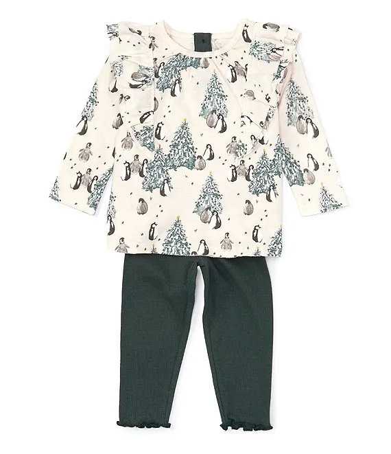 Baby Girls Newborn-24 Months Long-Sleeve Penguin-Printed Tunic Top & Solid Ribbed Leggings Set