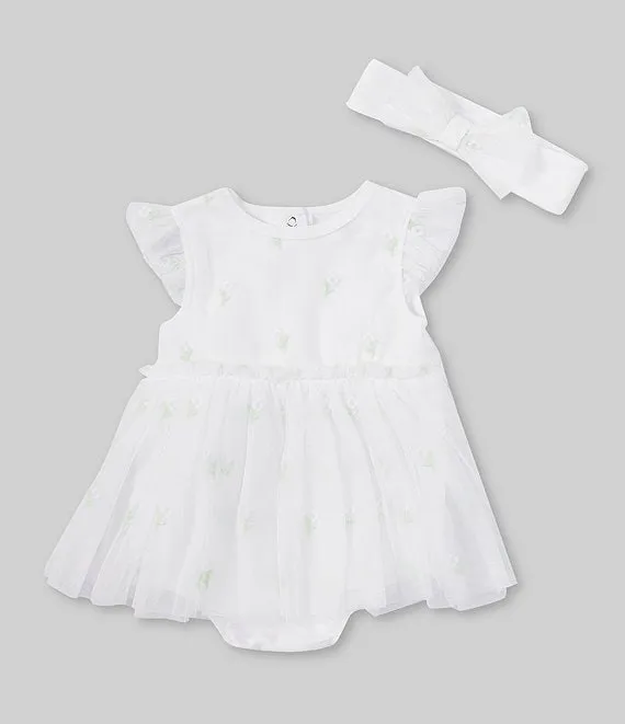 Baby Girls 3-12 Months Flutter-Sleeve Skirted Bodysuit