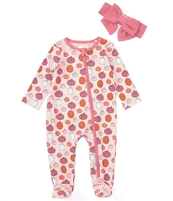 Baby Girls Newborn-9 Months Long Sleeve Pumpkin Patch Footed Coverall