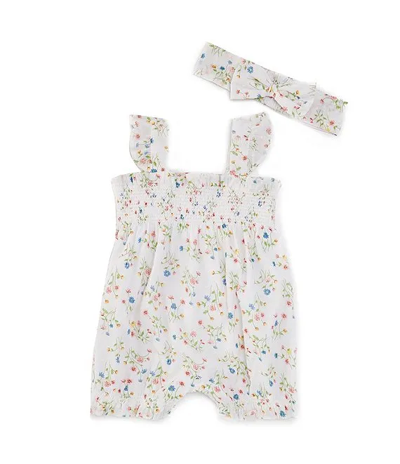Baby Girls 3-12 Months Sleeveless Floral-Printed Romper