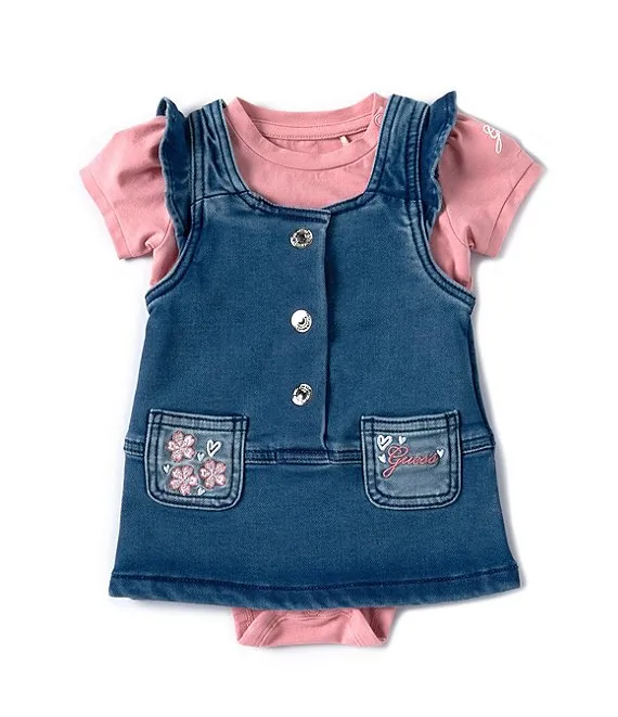 Guess Baby Girls 3-24 Months Sleeveless Knit Denim Dress & Short Sleeve Jersey Bodysuit Set