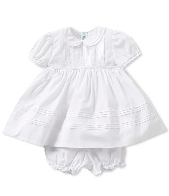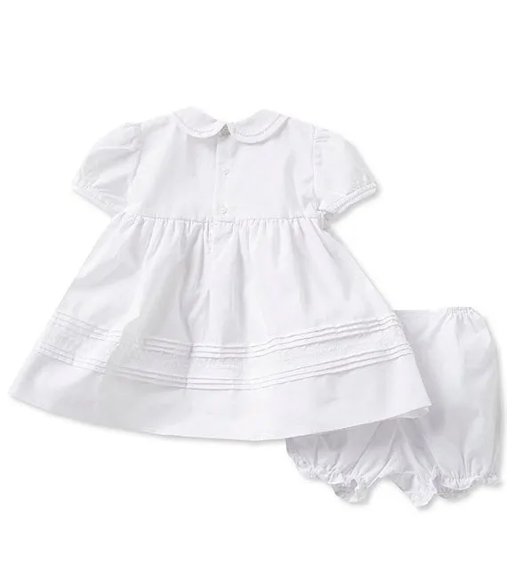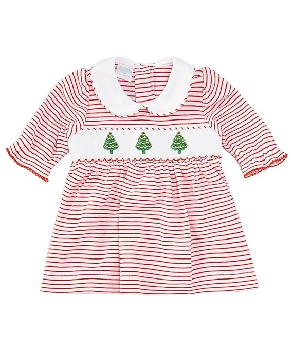 Edgehill Collection Baby Girls Newborn-24 Months Peter Pan Collar Long Sleeve Smocked Christmas Tree Dress