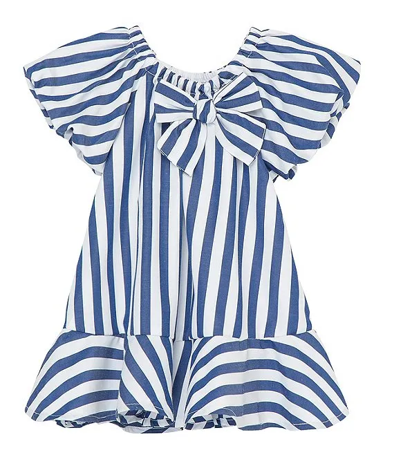 Baby Girls 12-24 Months Bubble Sleeve Bow Striped Dress