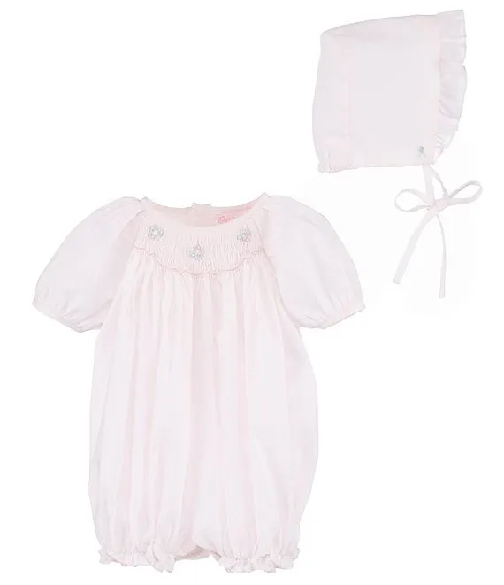 Baby Girls Preemie-Newborn Smocked Bubble Romper & Bonnet Set