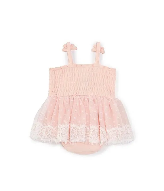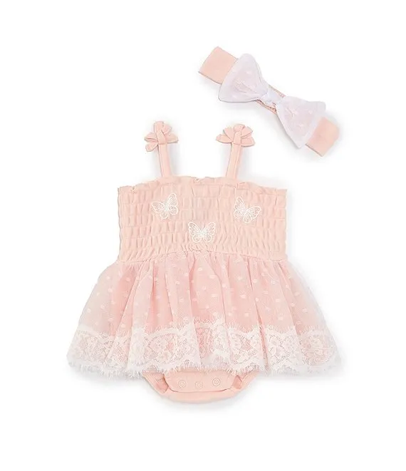 Baby Girls 3-9 Months Butterfly-Appliqued Smocked Bodice/Lace-Trimmed Tulle-Skirted Bodysuit