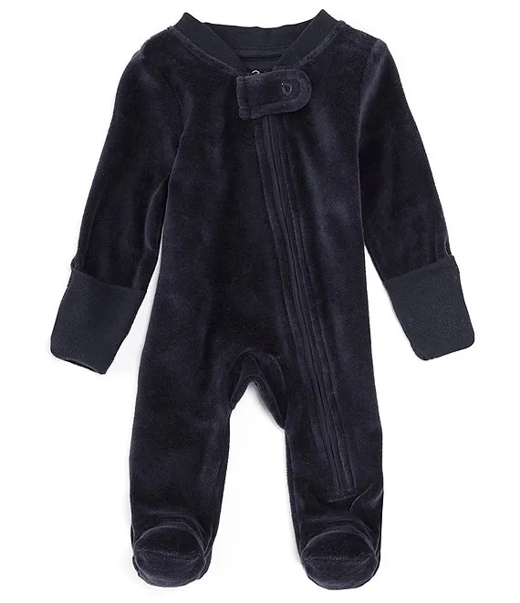 Baby Girls Newborn-9 Months Round Neck Long Sleeve Velour Zip Front Coverall