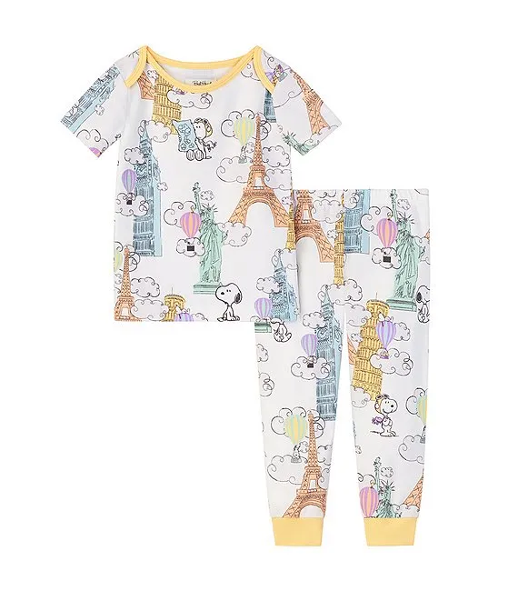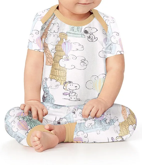 Baby 3-18 Months Short Sleeve Bon Voyage Snoopy Stretch Jersey Pajama 2-Piece Set