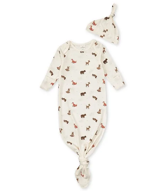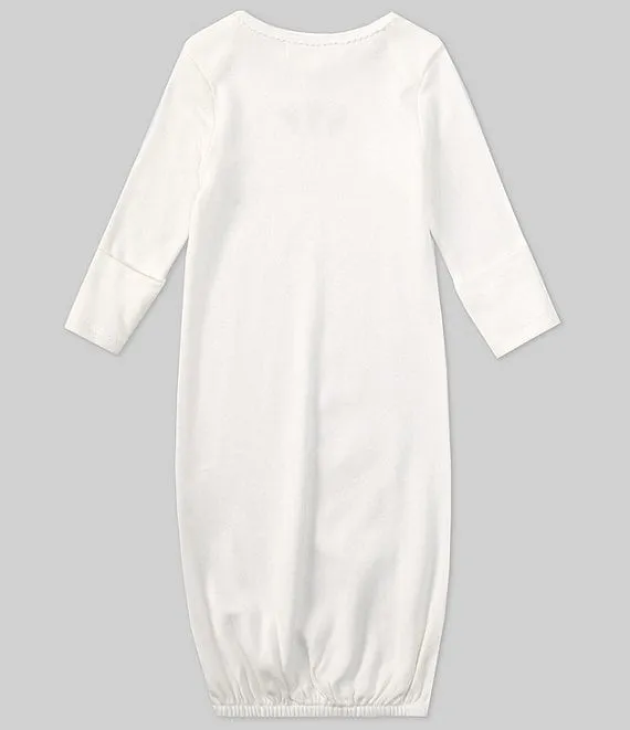 Baby Girls Preemie-6 Months Long Sleeve Knotted Gown & Hat Set