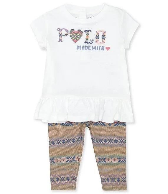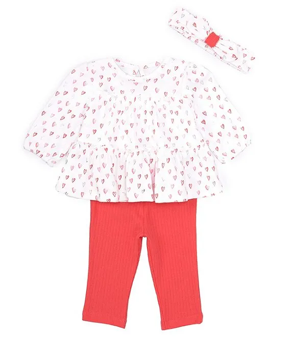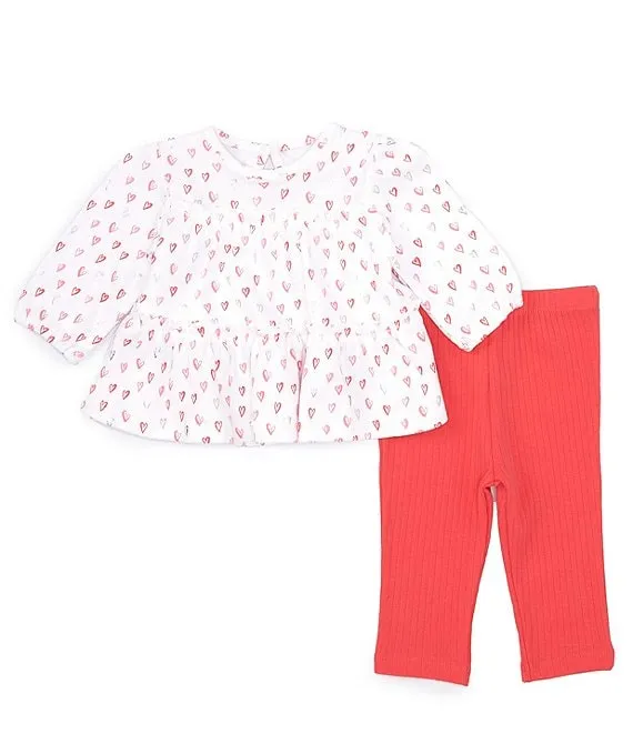 Baby Girls 3-12 Months Long-Sleeve Heart Print Tunic Top & Solid Leggings Set