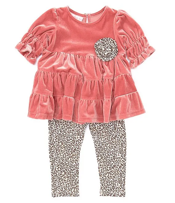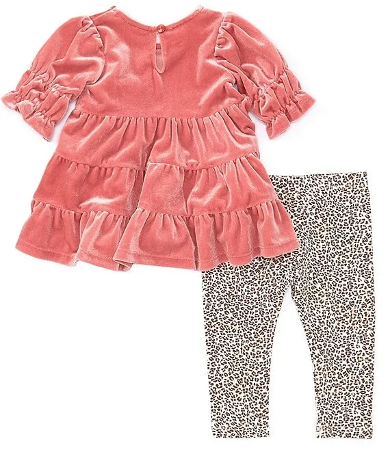 Bonnie Jean Baby Girls Newborn-24 Months 3/4-Sleeve Velvet Fit-And-Flare Dress & Animal-Printed Leggings Set