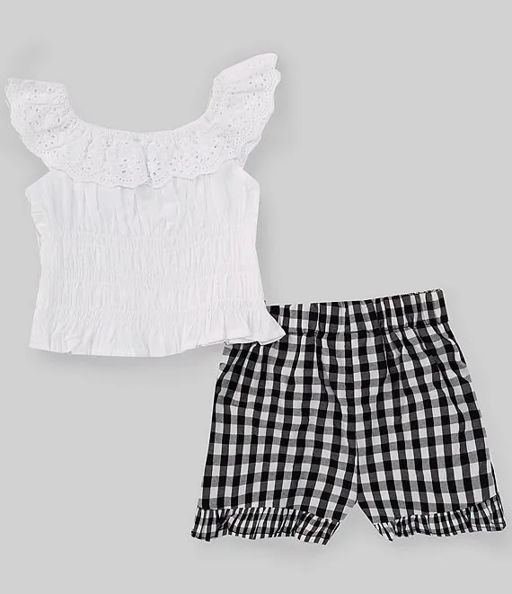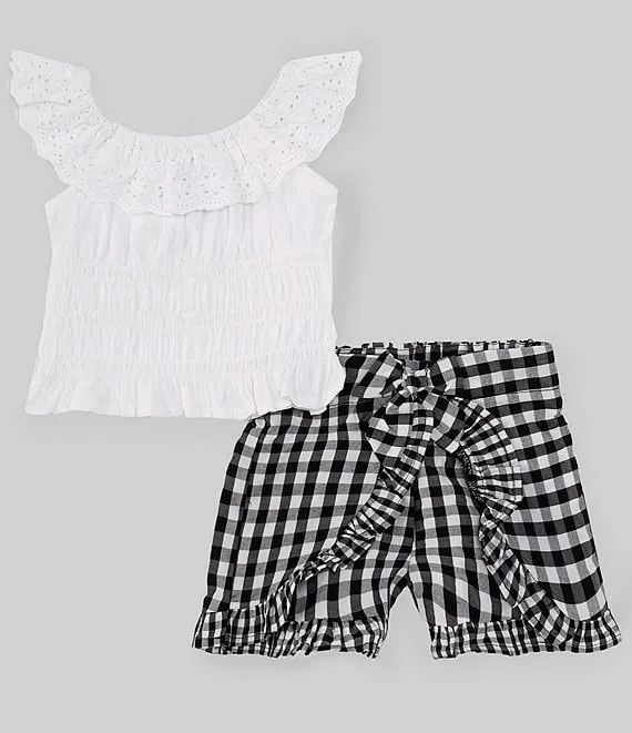 Baby Girls 3-24 Months Solid Poplin Tank Top & Gingham-Printed Woven Skort Set
