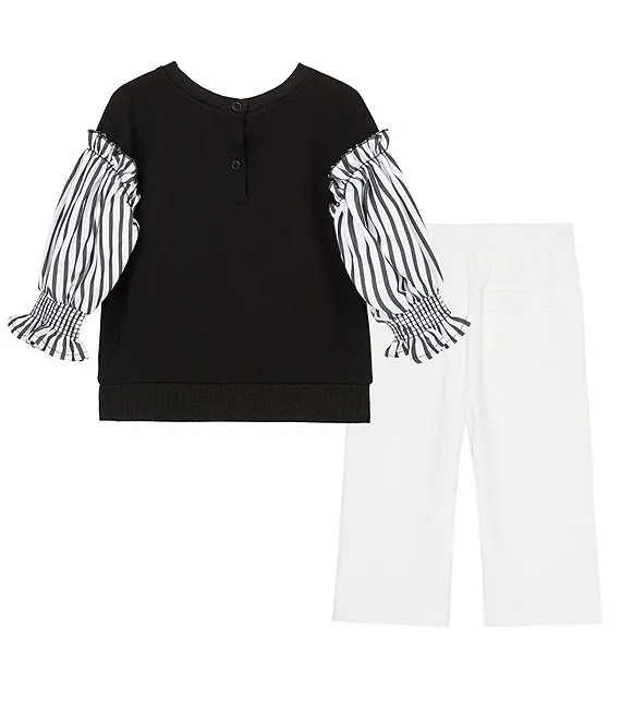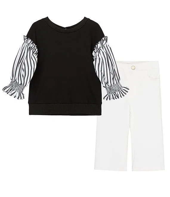 Baby Girls 12-24 Months Solid/Striped Knit/Woven Two-Fer Long Sleeve Top & Pants Set